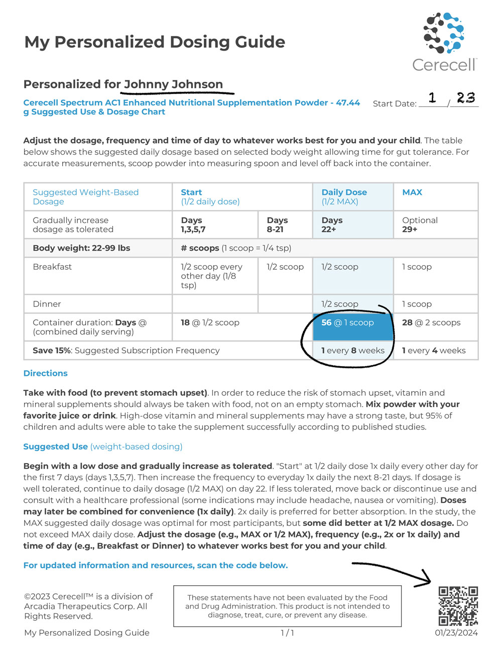 Create a printable “Personalized Dosing Guide” for you or your child using the simple form below.